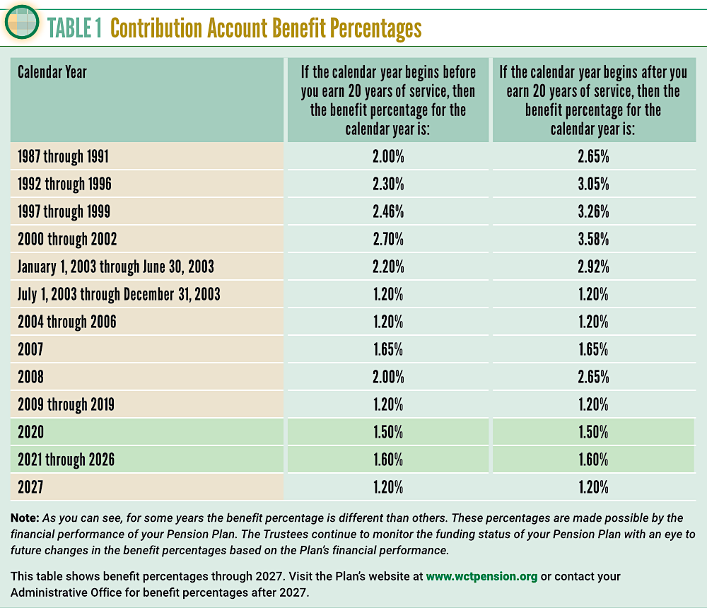 Effective January 1, 2026, the WCTPT Trustees approved an extension of the 1.6% bonus accrual rate through December 31, 2026. This accrual rate applies to all participants regardless of the years of service the participant has earned. The accrual rate will return to 1.2% as of January 1, 2027. The accrual rate for earning non-contributory service remains at 1.2%.